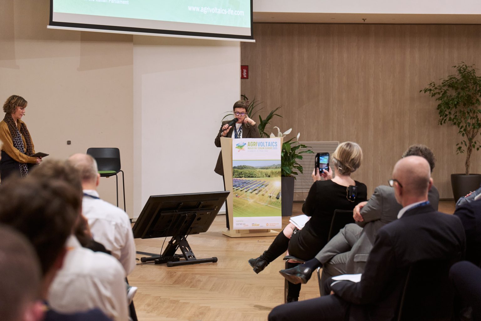 In the opening keynote speech, Antonella Forattini, Member of the Italian Parliament, highlighted the massive potential of agrisolar in Italy, estimated at around 30 GW. She emphasised that renewable energy should not be seen as a competitor to agriculture, but rather as a solution to strengthen the farming sector.